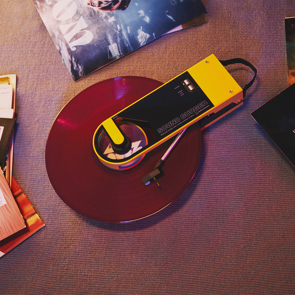 Thanks to its Bluetooth connection and compact, lightweight design, the Sound Burger is the perfect partner for parties, picnics, or compact living spaces. Connect to your Bluetooth headphones or speakers and enjoy your favorite vinyl records wirelessly for up to 12 hours.